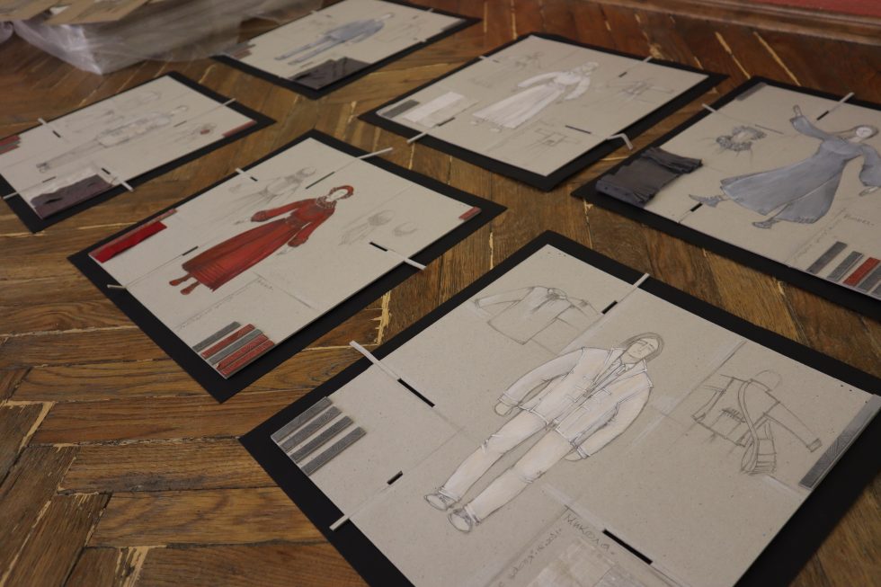 Першого дня художниця Наталя Ридванецька провела дві лекції на тему історичного костюму. На прикладі своїх робіт – ескізів та фото костюмів у виставах – вона поділилася своїм досвідом роботи з літературними текстами та режисерами в різних театрах. Розповіла про переваги і недоліки використання тканин, нюанси з кроєм костюмів, співпраці з цехами, сценографами, акторами. Окрім того, учасники_ці мали можливість в рамках Квадрієнале Сценографії відвідати публічну дискусію з художниками_цями з Австрії та Литви; потрапити на відкриття виставки «Театральний костюм на сцені, за лаштунками і в об’єктиві» у будівлі Центральної пошти; переглянути виставу «Другу» (реж. Олег Онещак) у Галереї «Дзиґа».